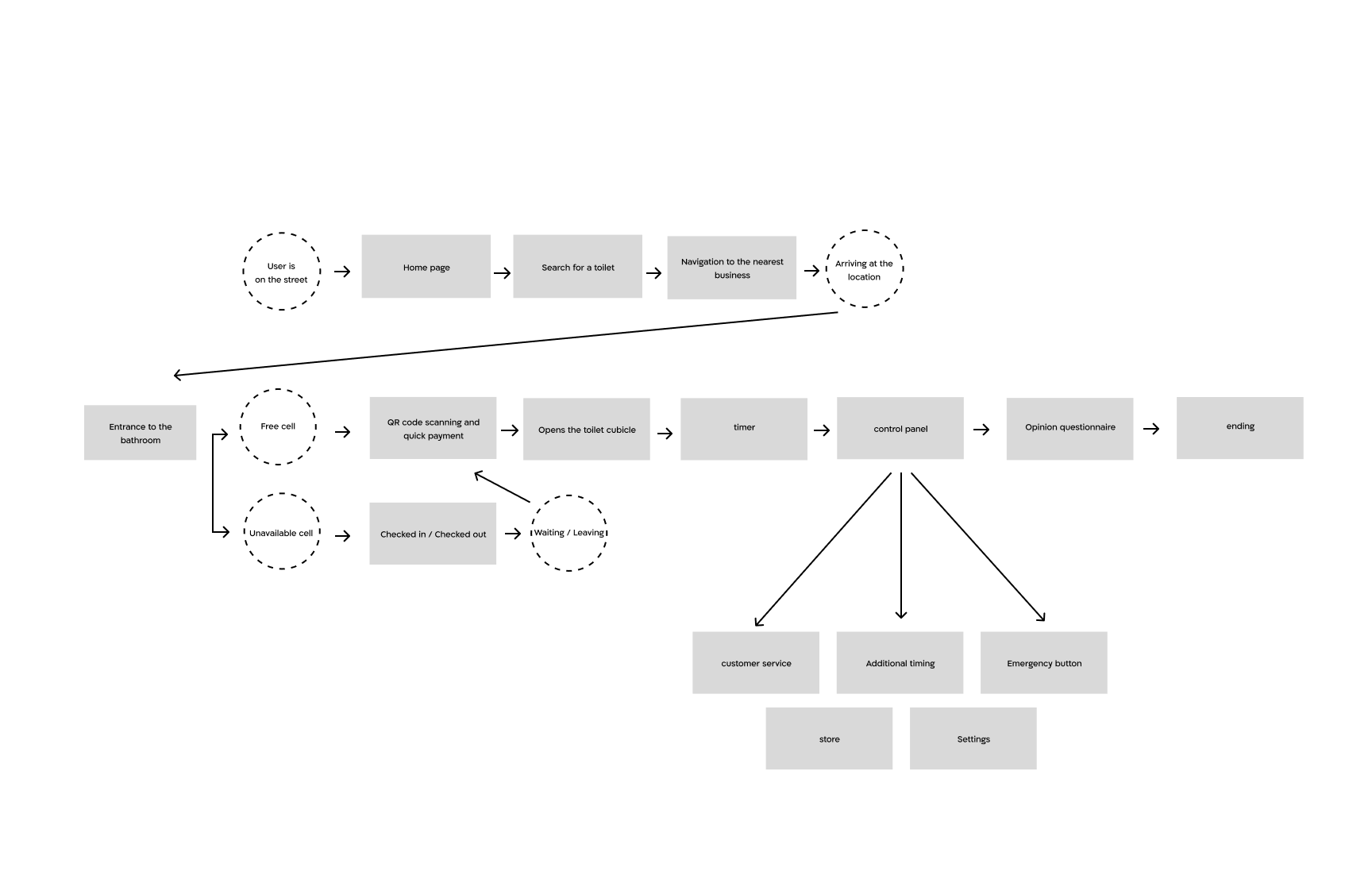 Starting with user behavior analysis and urban infrastructure studies, I began to understand the gaps in restroom availability and accessibility. Additionally, I uncovered a growing need for real-time solutions tailored to diverse user groups, highlighting opportunities for a more inclusive and efficient system.