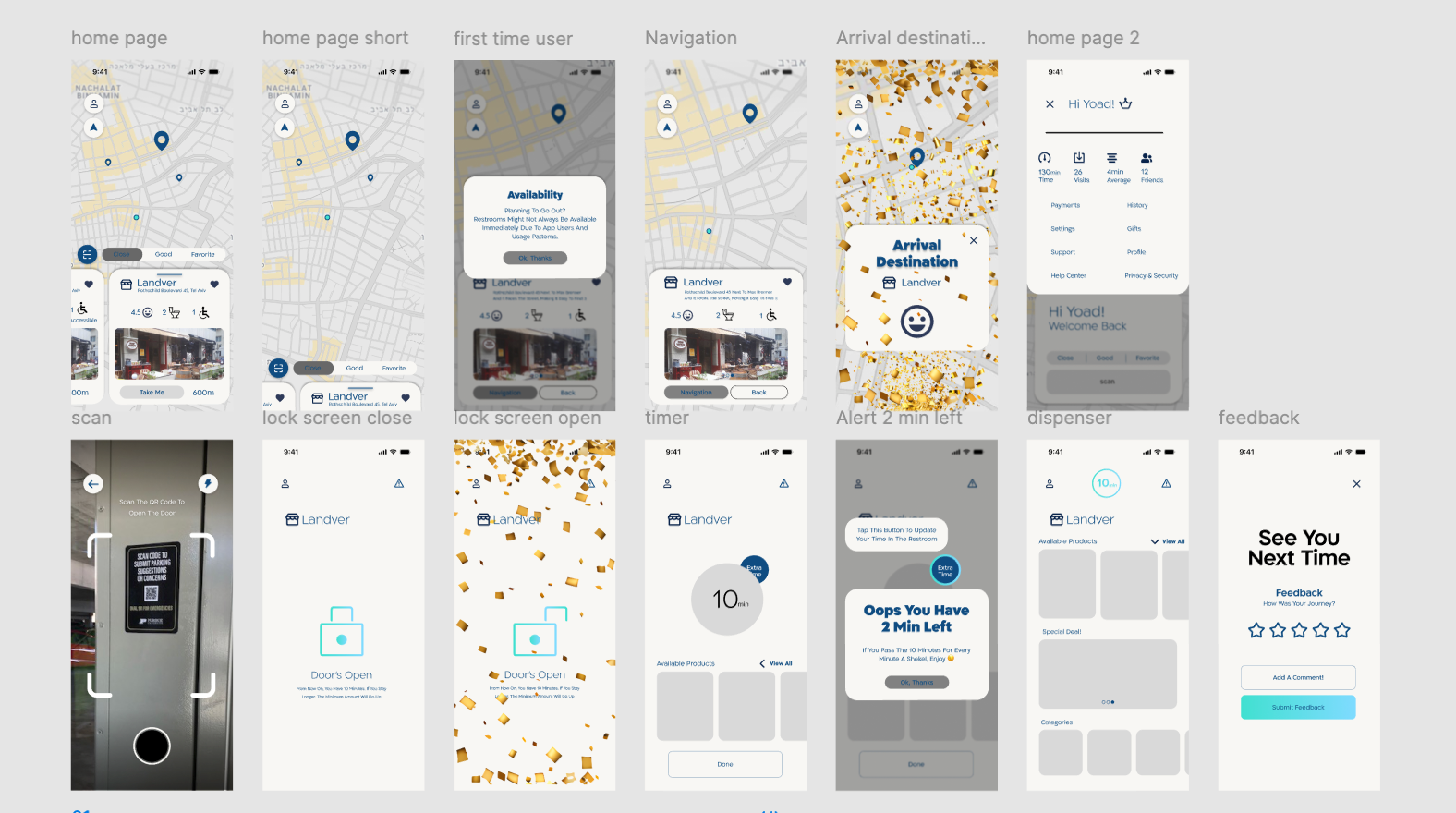I chose the combination of blue and white to convey a sense of cleanliness, order, and high aesthetic reflecting the ideal experience I want users to feel when entering a clean, welcoming public restroom. Beyond the visual clarity, this color pairing is also symbolic: blue and white are the national colors of Israel, subtly referencing the cultural origin of the project. This choice creates both a visual and emotional connection, while supporting an interface that feels bright, trustworthy, and accessible.